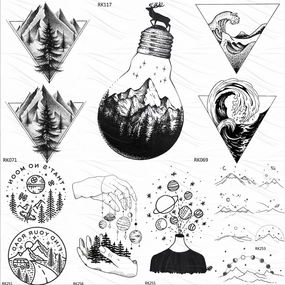 2020 Newestthe Second Glass Mountain Pine Tree Temporary Tattoos Sticker Triangle Wave Custom Tattoo Body Art Arm Black Small Fake Tatoos From Linzhilan889 0 2 Dhgate Com